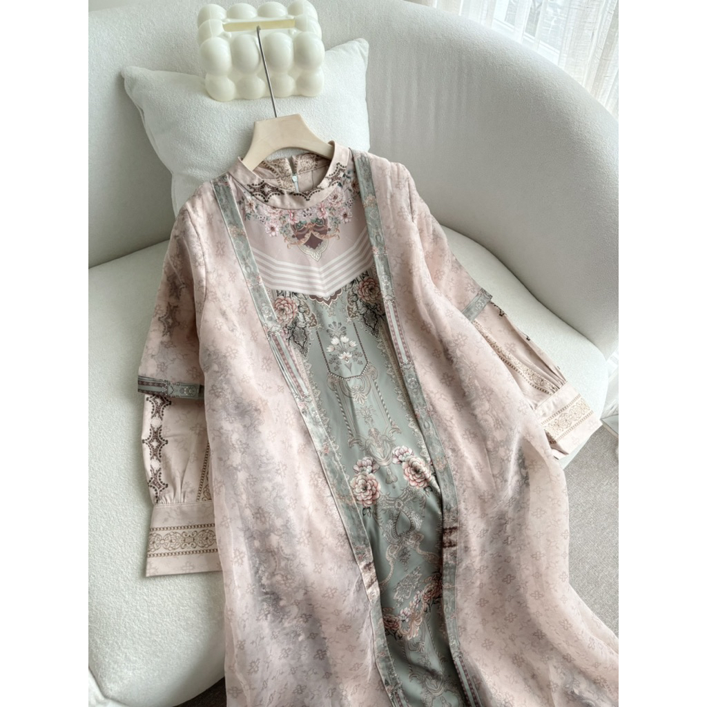 CANDY LADY Pesona Set Hijab Maxi / Gamis Sultan Lebaran Sarimbit Keluarga Dress Ramadhan Motif Premium Silk Sutra Organz