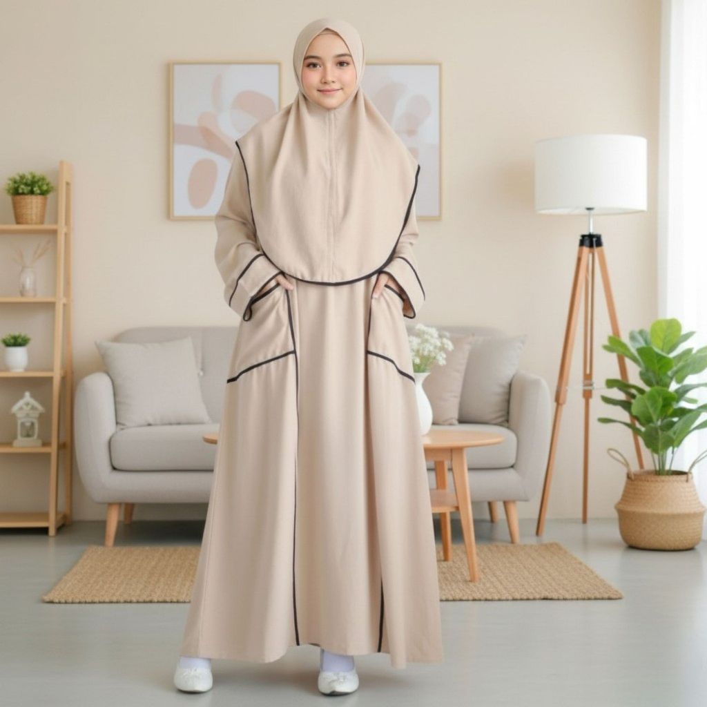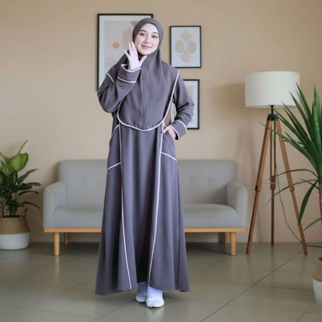 Gamis Abaya Set Hijab Syari – Bahan Adem Nyaman, Gamis Lebaran Wanita Terbaru 2025