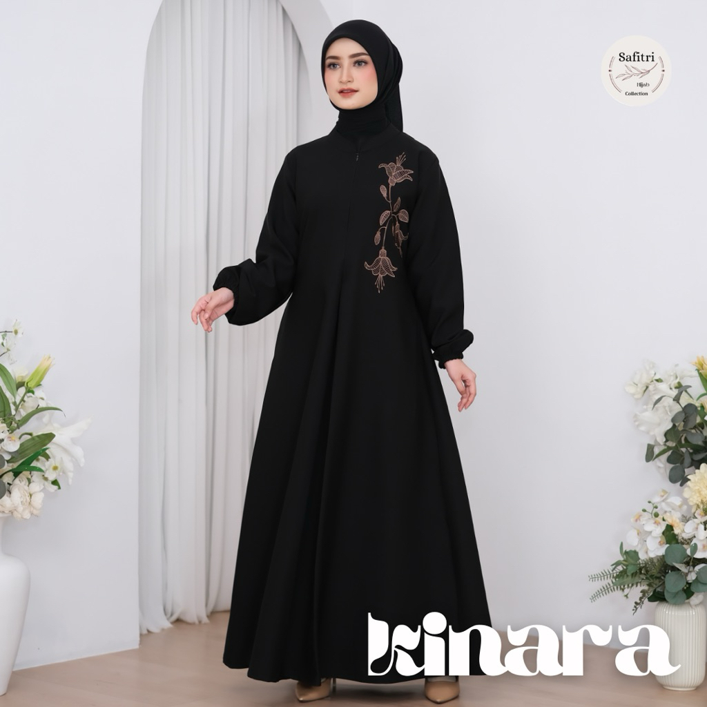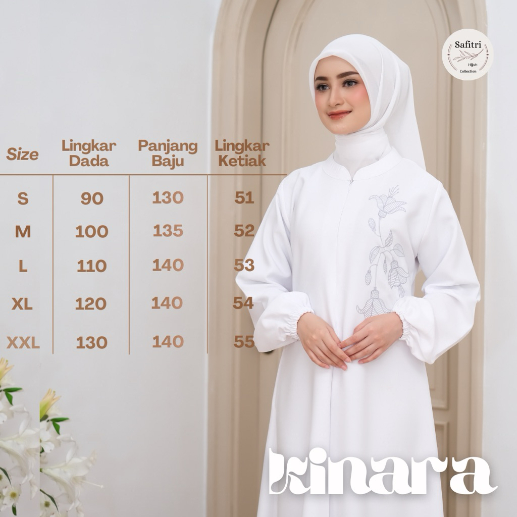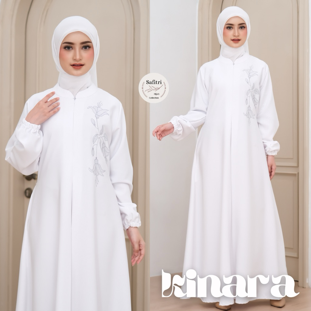 KINARA DRESS Gamis Umroh Manasik Haji Ihram Lebaran Kondangan Daily Homey kombinasi bordir Bahan Tebal Katun adem Tidak