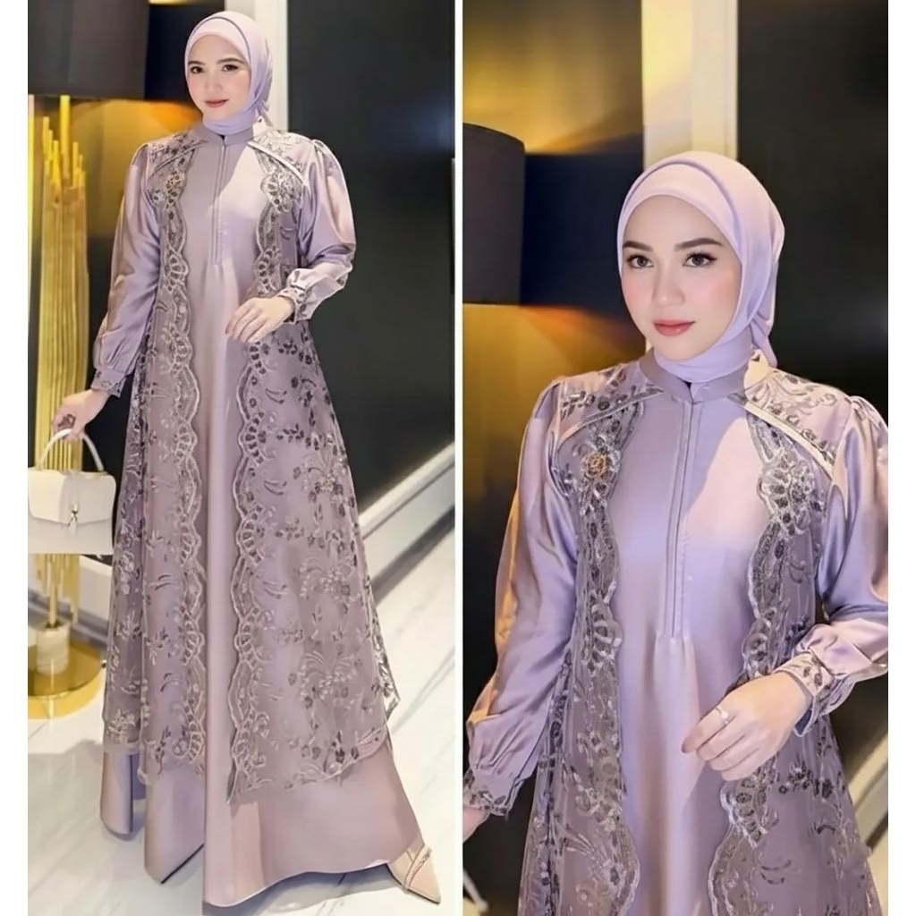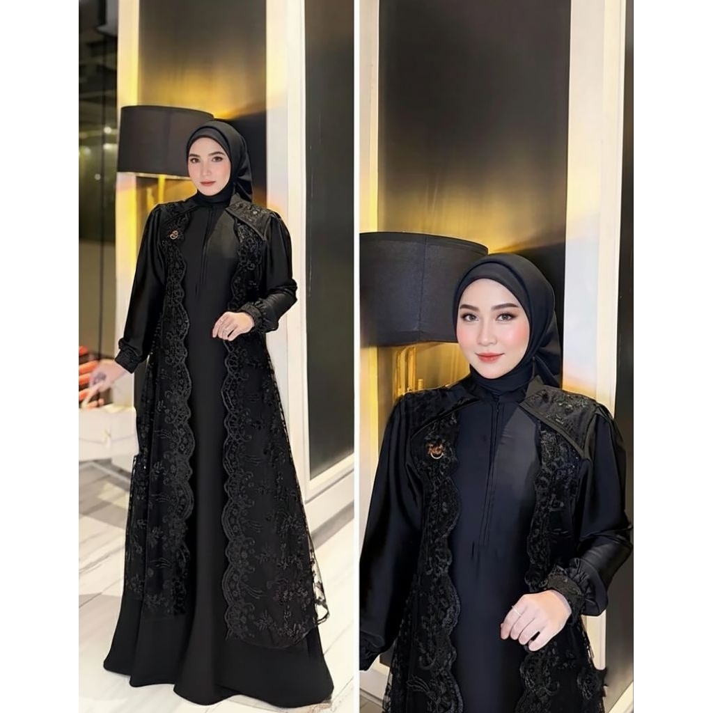 GAMIS WANITA KEKINIAN ELEGANT MARBELLA DRESS VELVET MIX BRUKAT LEBARAN PESTA MEWAH MUSLIMAH OUTFIT