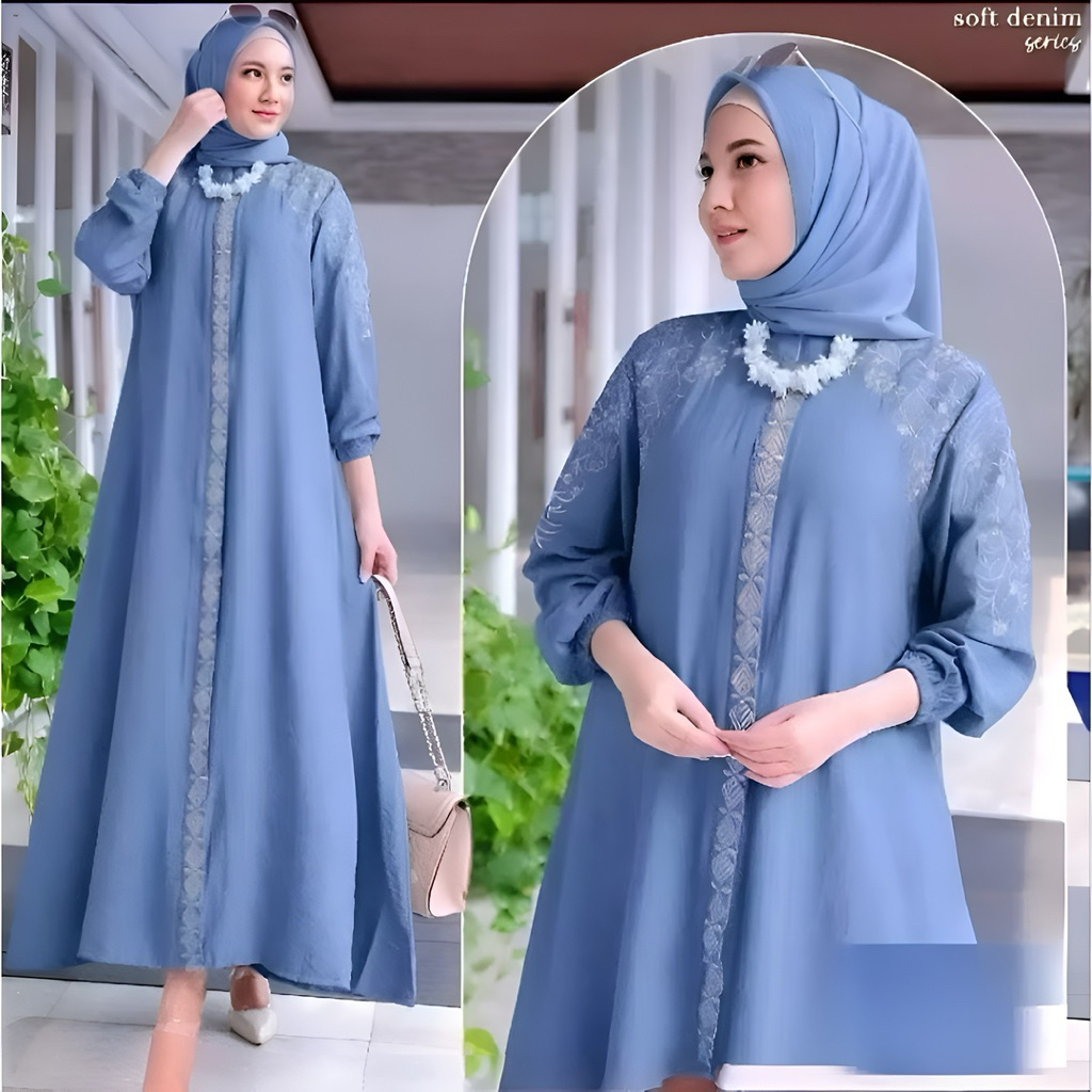 GAMIS KONDANGAN MEWAH ELEGAN UKURAN M L XL XXL XXXL BAHAN POLO LINEN MIX BORDIR BUSUI DRESS PESTA ELEGANT