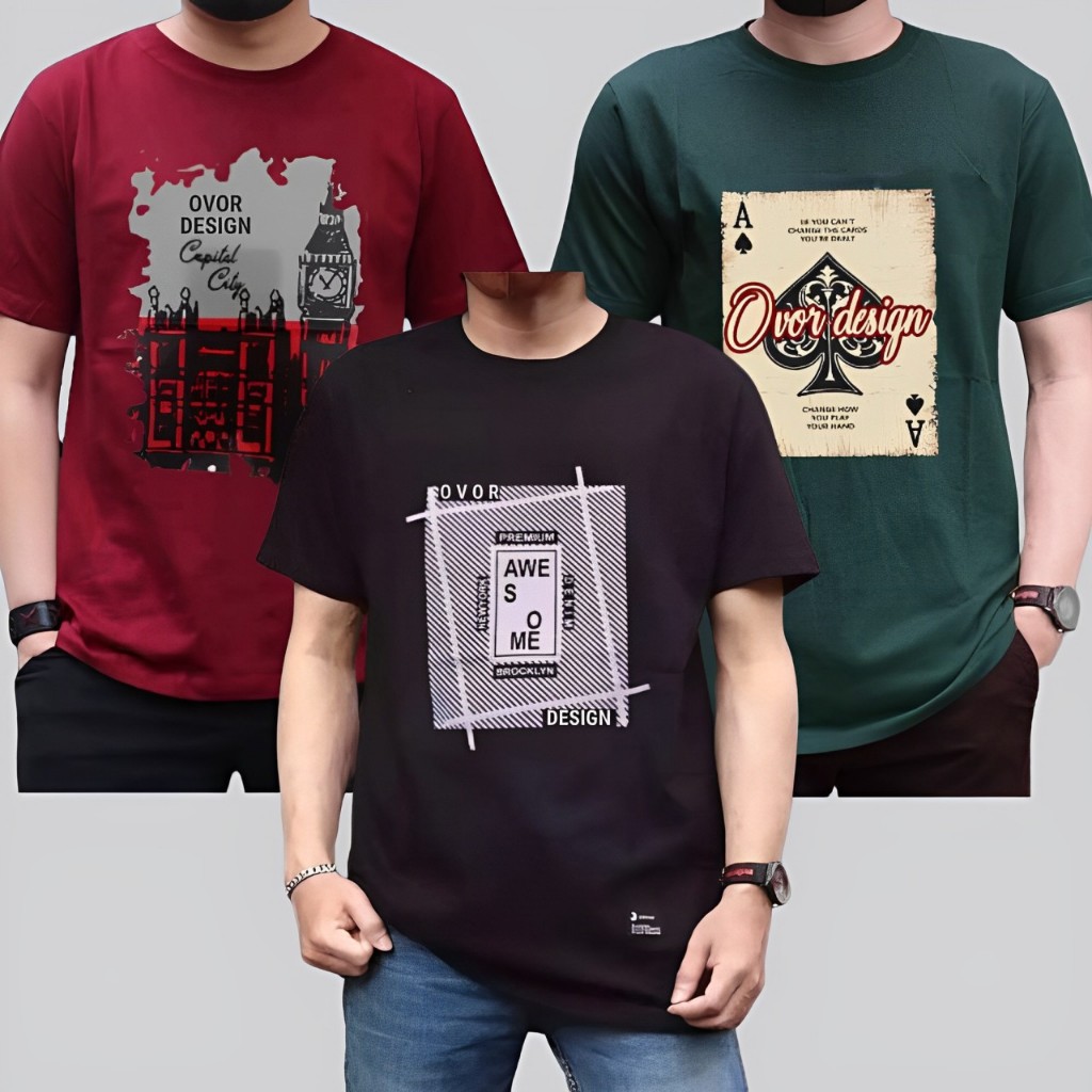 Kaos Distro Pria Paket isi 3 Pcs} Baju Koas Pria Wanita Koas Obolong Lengan Pendek