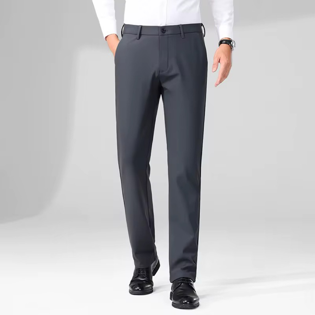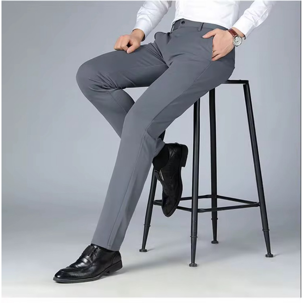 Loowes - Celana Kantor Pria Model Slim Fit Warna Hitam Bahan Semi Woll