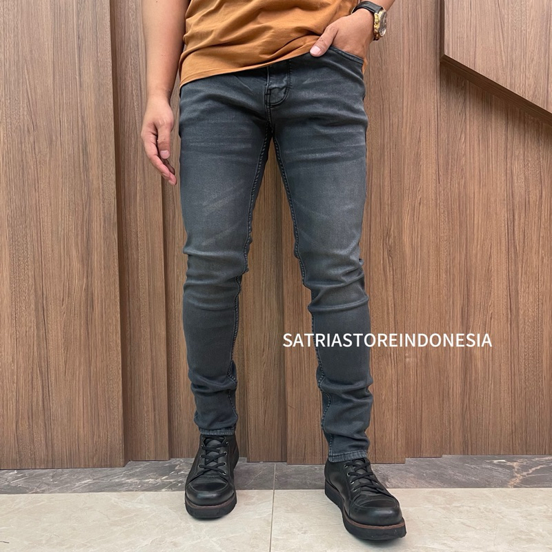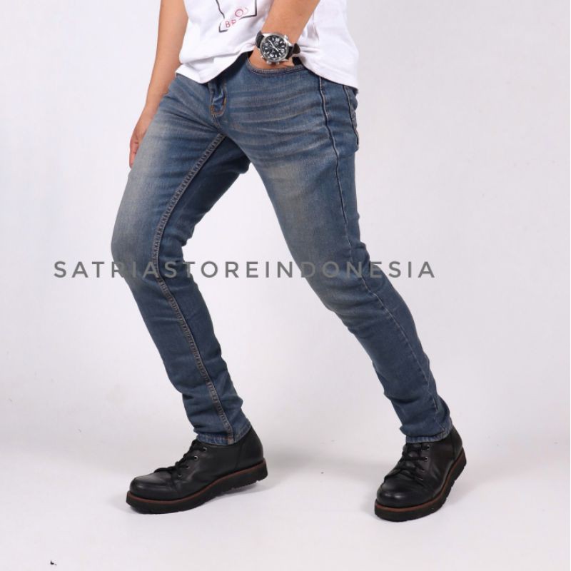 Satria Store, Celana Jeans Pria Slim Fit Celana Panjang Pria Stretch Dark Retro Kekinian
