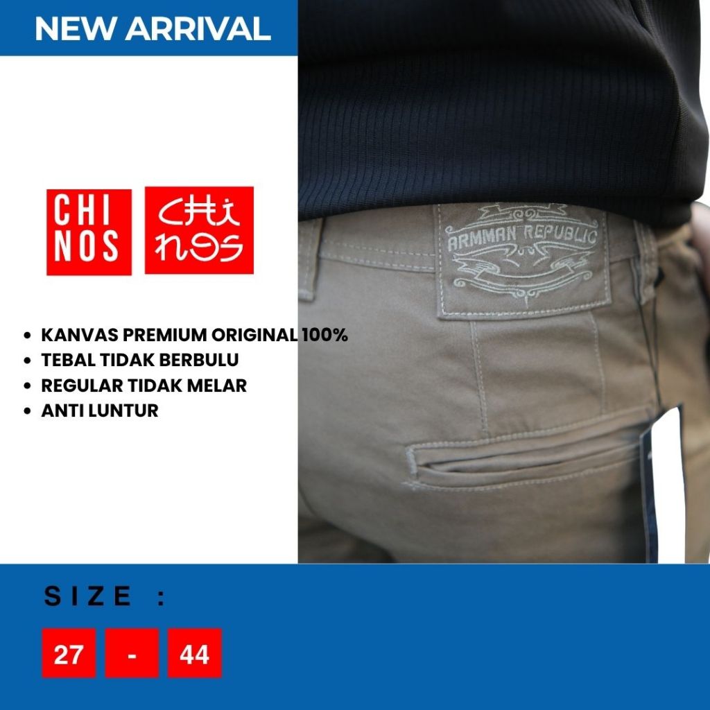 Celana Panjang Chinos Pria Reguler Fit Katun Canvas Tebal Premium Original 100 PERSEN Arman Republic Jumbo 27 Sampai Big size 45