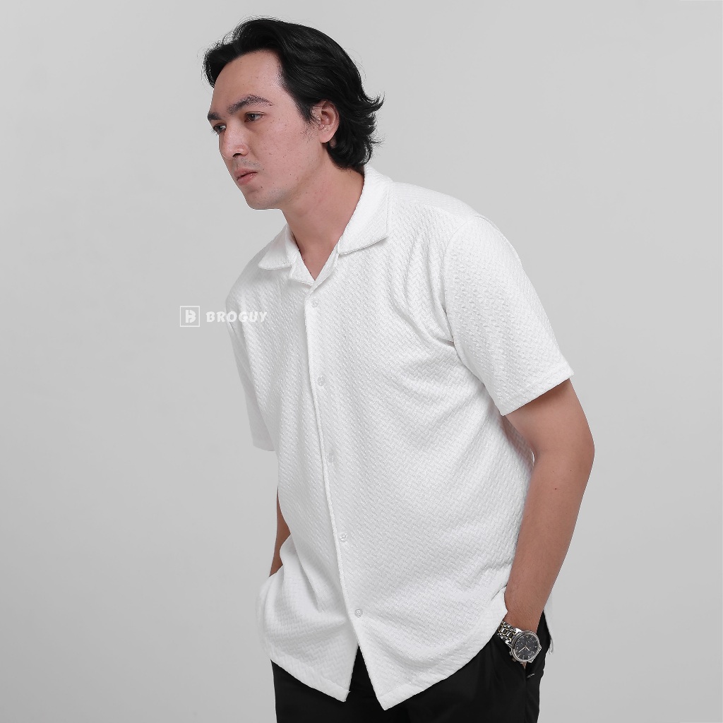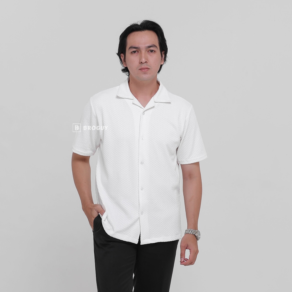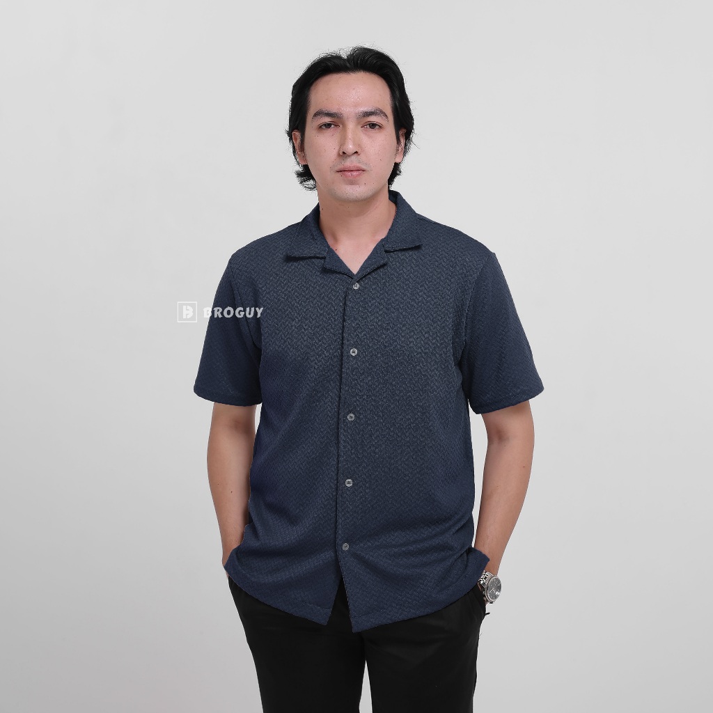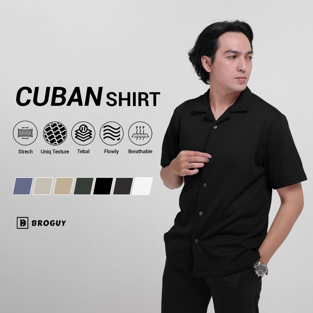 BROGUY Kemeja Cuban Shirt Pria Casual Lengan Pendek Stretch
