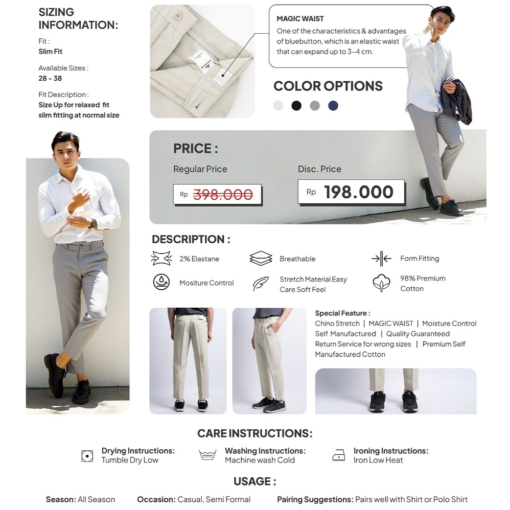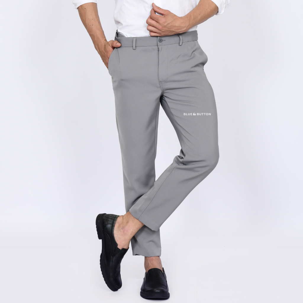 BLUEBUTTON Celana Bahan Pria Slim Fit Ankle Pants Air Celana Formal Kerja Light Grey