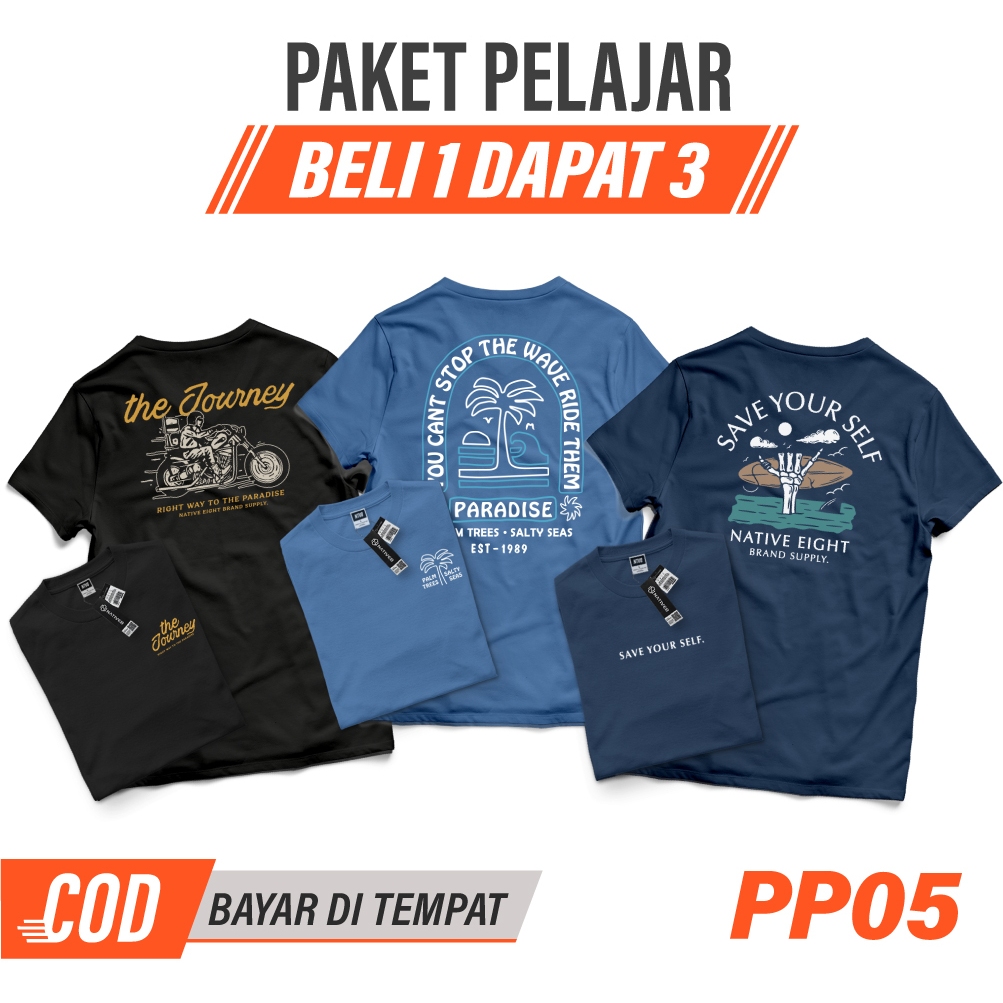 PAKET 3 BAJU KAOS DISTRO NATIVE8 BAHAN COTTON COMBED 30S PREMIUM