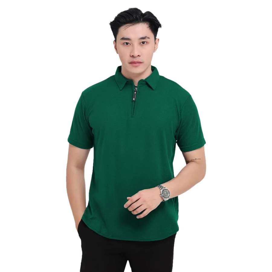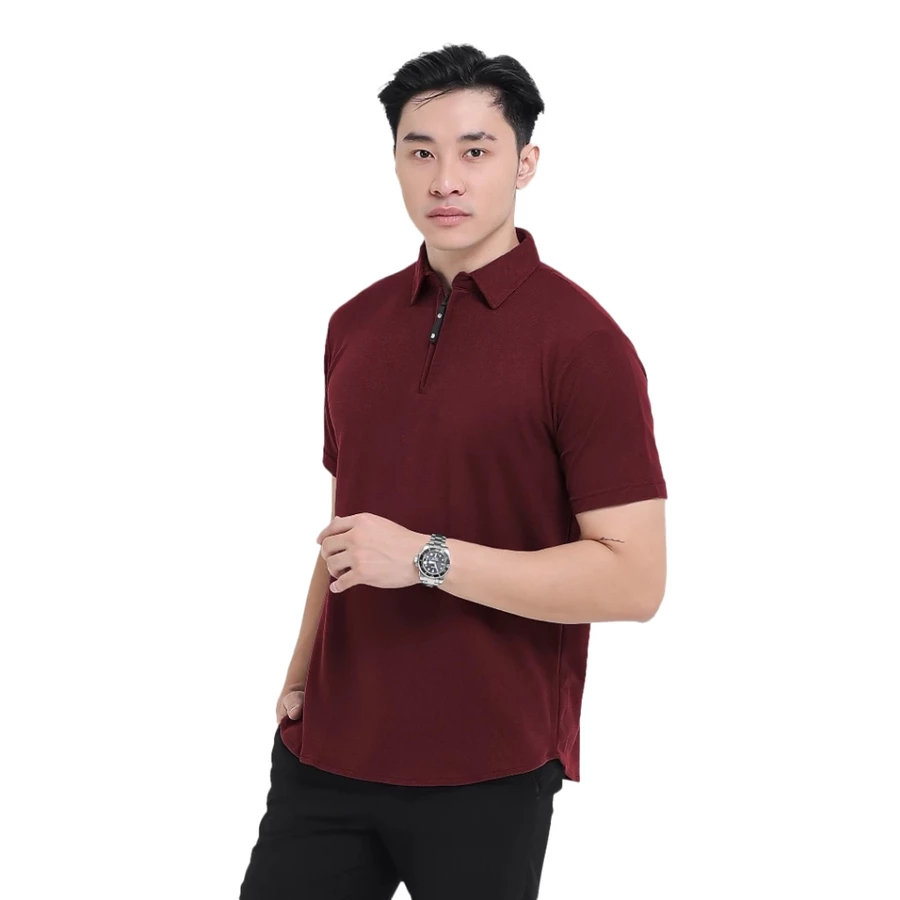BROGUY Kaos Polo Shirt Pria Kerah Lengan Pendek Zipper - Light Brown