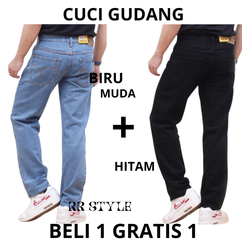 CUCI GUDANG BELI 1 GRATIS 1 Celana Jeans Pria Dewasa Pola Reguler Standar Bahan Tebal Terbaru