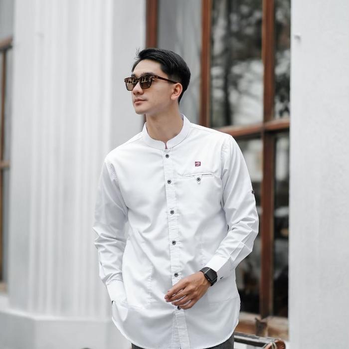 [Star] baju koko kurta Pakistan mikbab lengan panjang Toyobo premium alanza - Putih, M