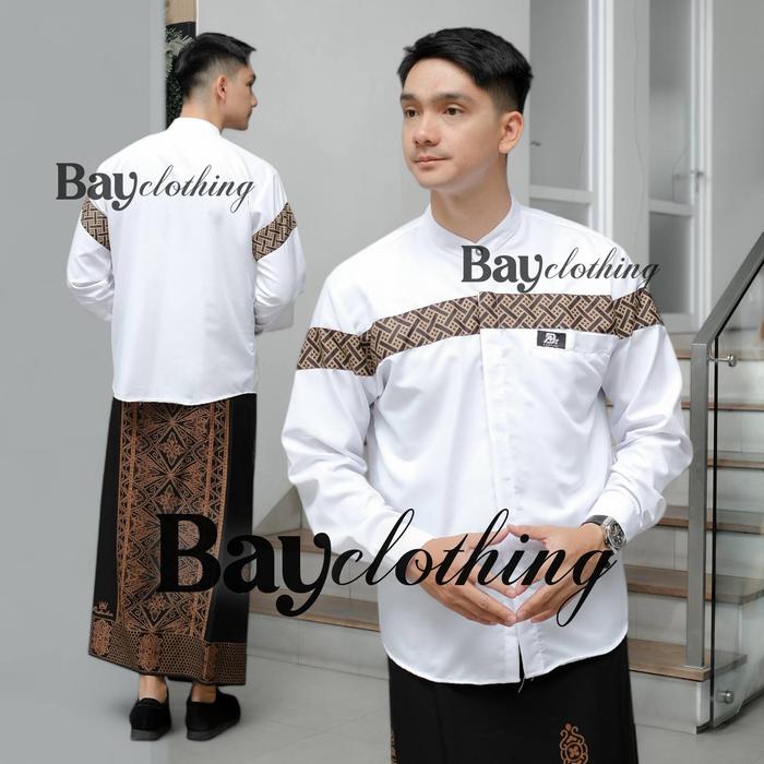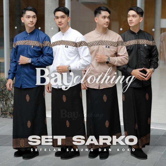 [Star] Setelan SARKO Sarung Dan Koko Lengan Panjang Motif Kobata Qinang Sarung Motif Sarang Tawon - Hitam, M, HITAM