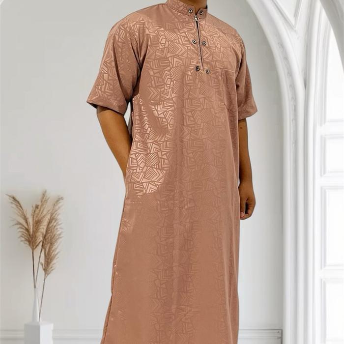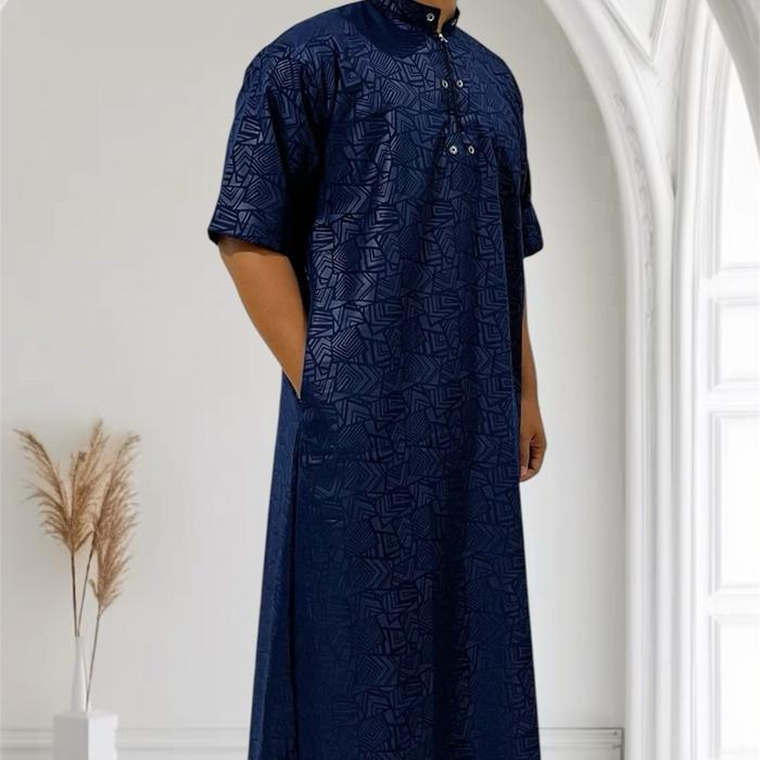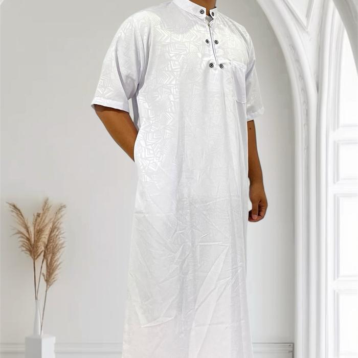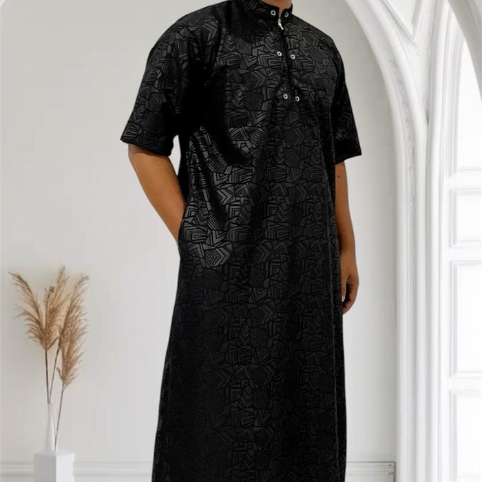 [Star] Jubah Pria Dewasa Gamis Habib Saudi Syari Lengan Pendek Ukuran Jumbo XXL - Bisa - Katun - Hitam, M