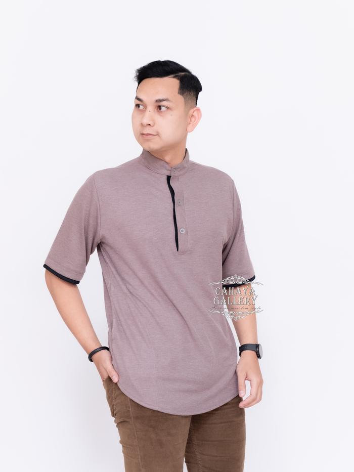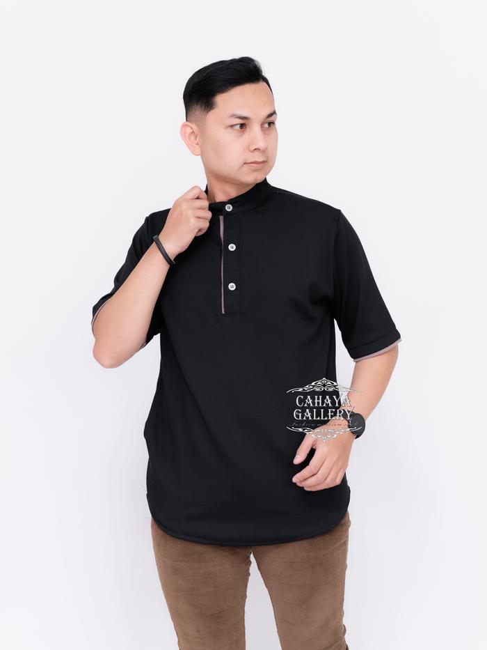[Star] Cahaya Gallery - Baju Muslim Koko Pria Dewasa Lengan Pendek Terbaru Nyaman Simpel Panjang - HITAM, S