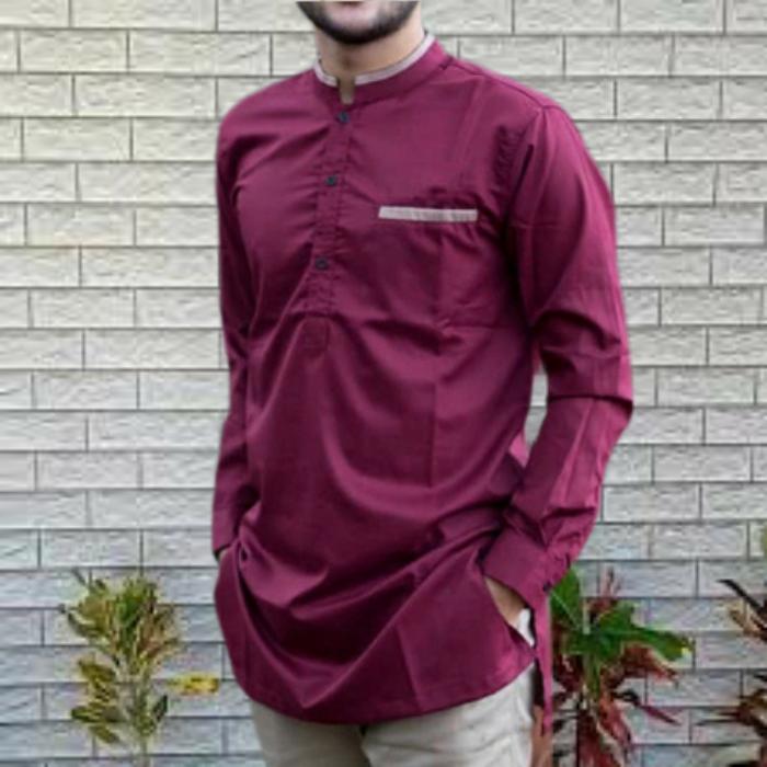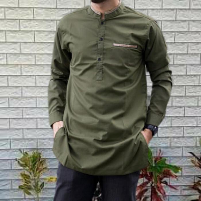 [Star] Gamis Pria Lengan Panjang Baju Koko Anwa Kerah Shanghai Uk:M,L,XL,XXL - Army, M
