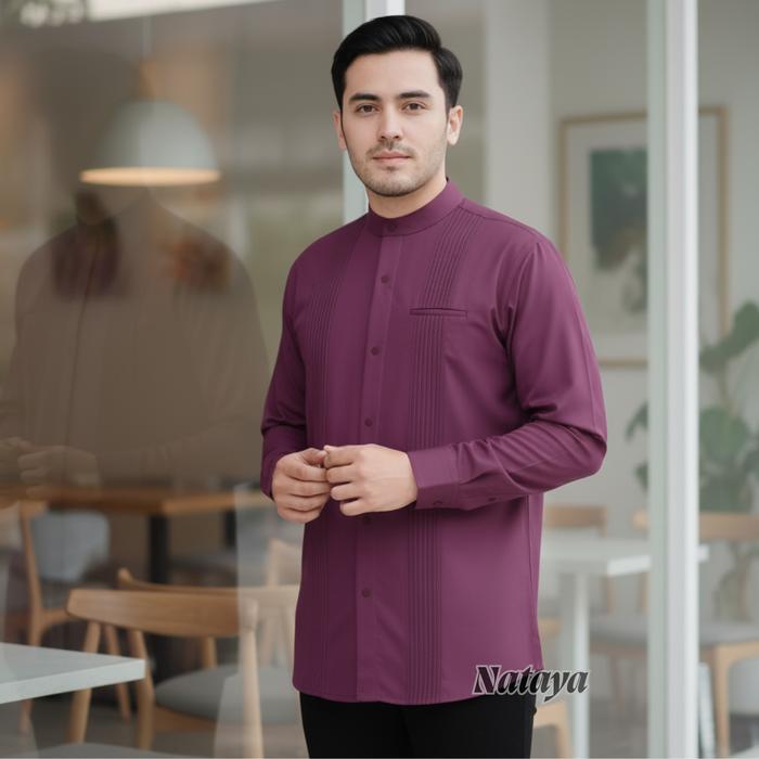 [Star] Nataya Baju Koko Pria Lengan Panjang Motif Abyan Warna Cokelat Bahan Katun Toyobo Premium Kualitas Terbaik Desain