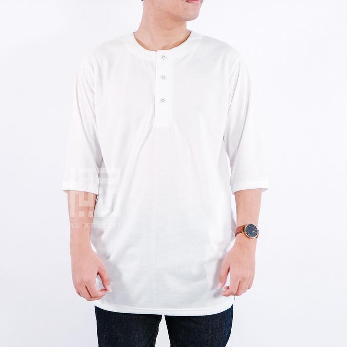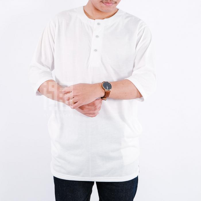 [Star] Kurta Pakistan Bahan Kaos Lengan 3/4 Baju Koko Muslim Fashion Dewasa Nyaman Tebal - White Bones, S