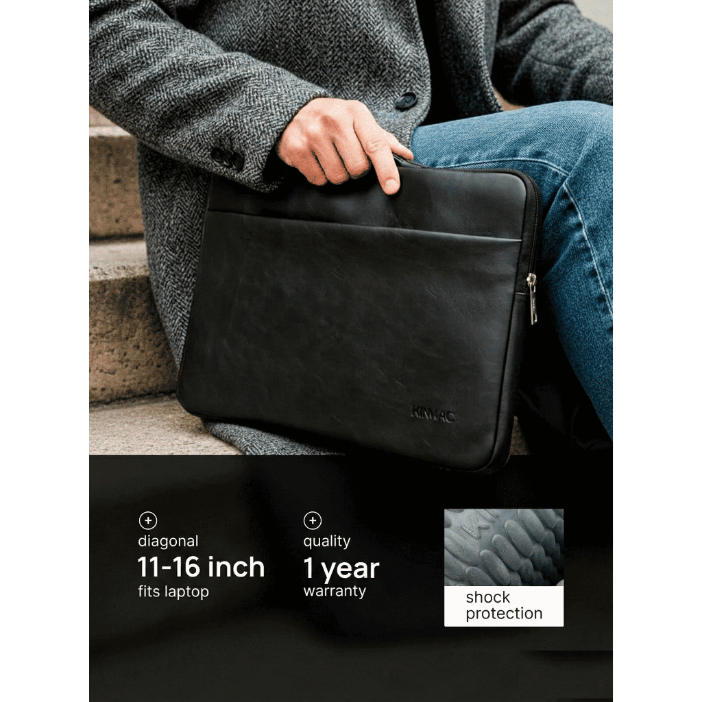 Kinmac Pu Leather Handstrap Tas Laptop / Macbook Sleeve Jinjing Series Kulit Ukuran 11 - 16 Inch