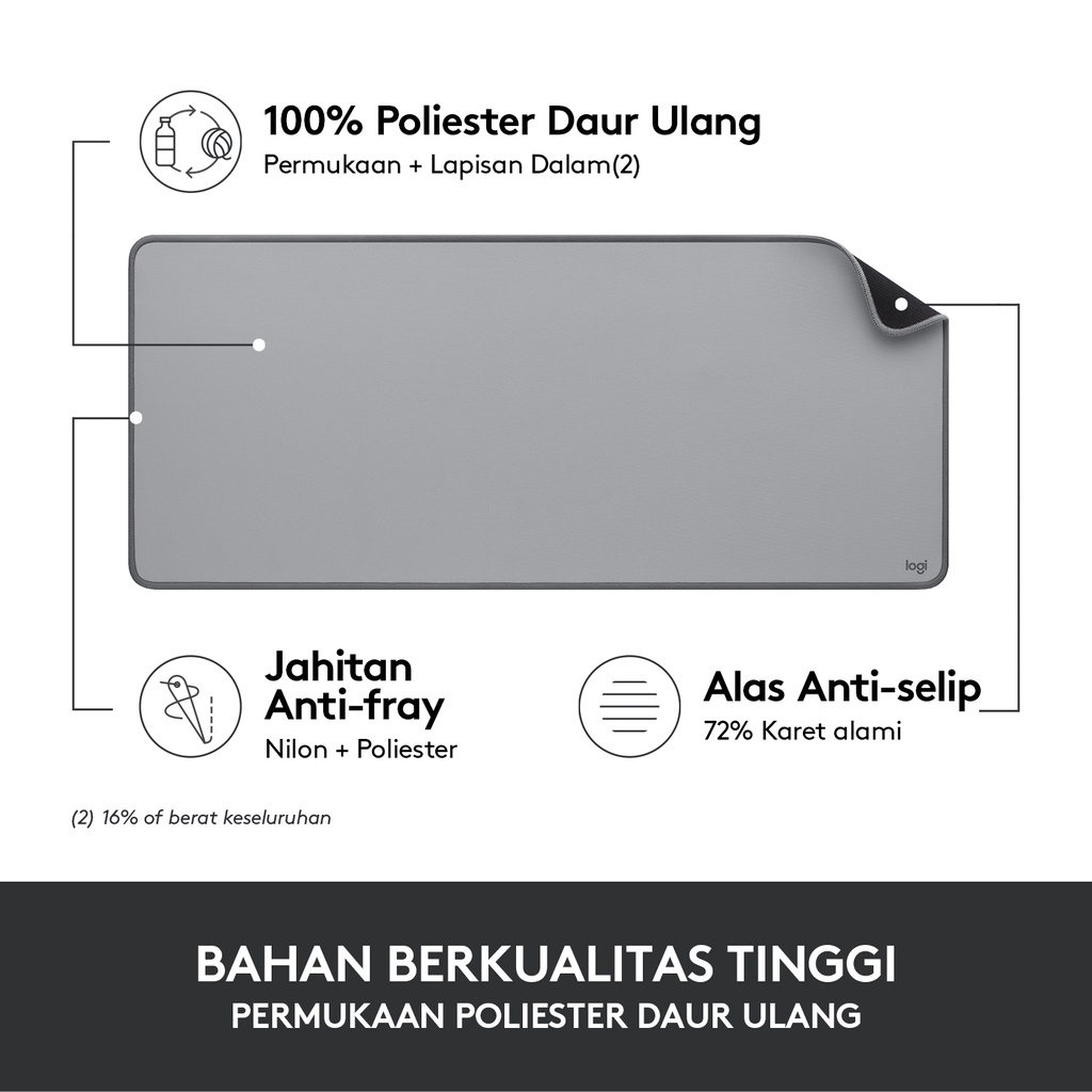 Logitech Desk Mat Studio Series Mouse Pad Xl Polos Anti-Slip - Grey
