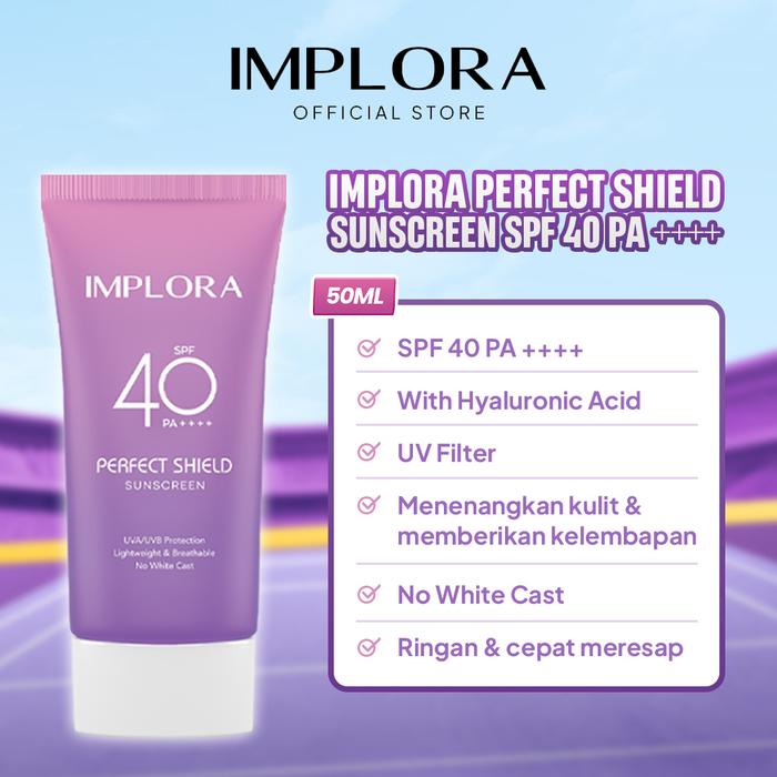 Implora Perfect Shield Sunscreen SPF 40 PA++++ Sunblock Wajah Hyaluronic Acid Extract Sunscreen