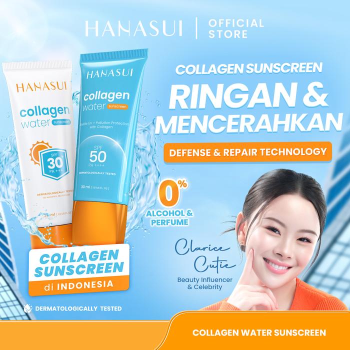 HANASUI Collagen Water Sunscreen - SPF 50 & SPF 30 - Ringan & Menenangkan Kulit No Whitecast Tidak