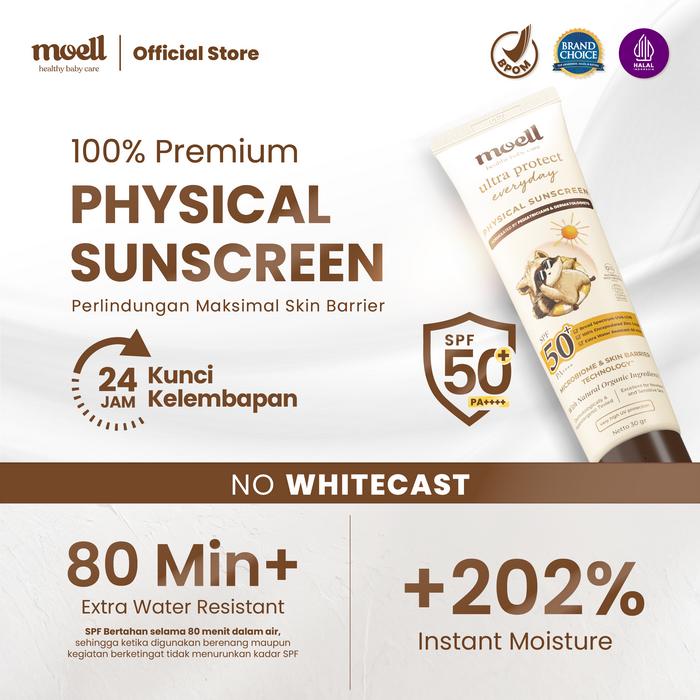 Moell Physical Sunscreen Anak 30gr SPF 50+ PA++++ - Broad Spectrum UVA-UVB - Perlindungan Maksimal -