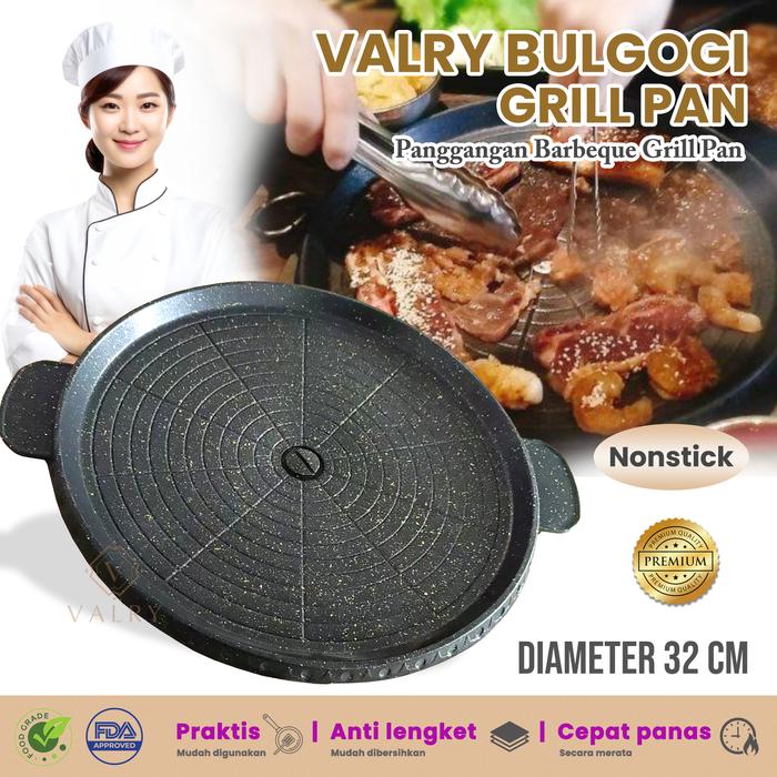 Bulgogi Grill Pan 32 CM Wajan Panggang Anti Lengket Pemanggang Roasted Barbeque Granit Marble Valry