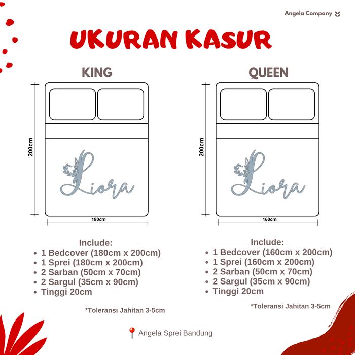 LIORA BEDCOVER SET SPREI FLAT SOFT LOS UKURAN KING 180X200X20/QUEEN 160X200 UNTUK TEMPAT TIDUR NYAMAN - TAUPE EMBOSS, KING 180X200X20