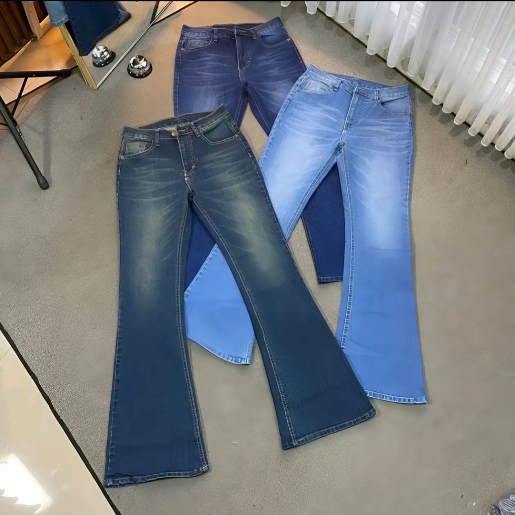 Highwaist Cutbray Jeans Retro - Celana Jeans Cutbray Whisker Premium Wanita Stretch
