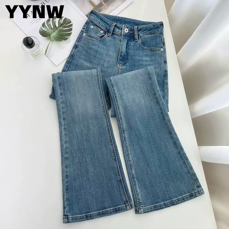 YYNW HighWaist Cutbray Jeans Celana Flare Panjang Stretch Wanita Retro Vintage Lipat Bawah