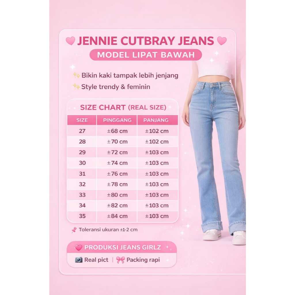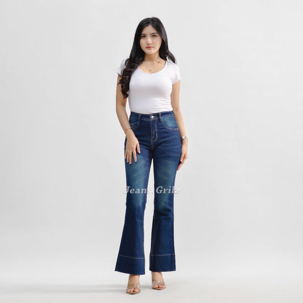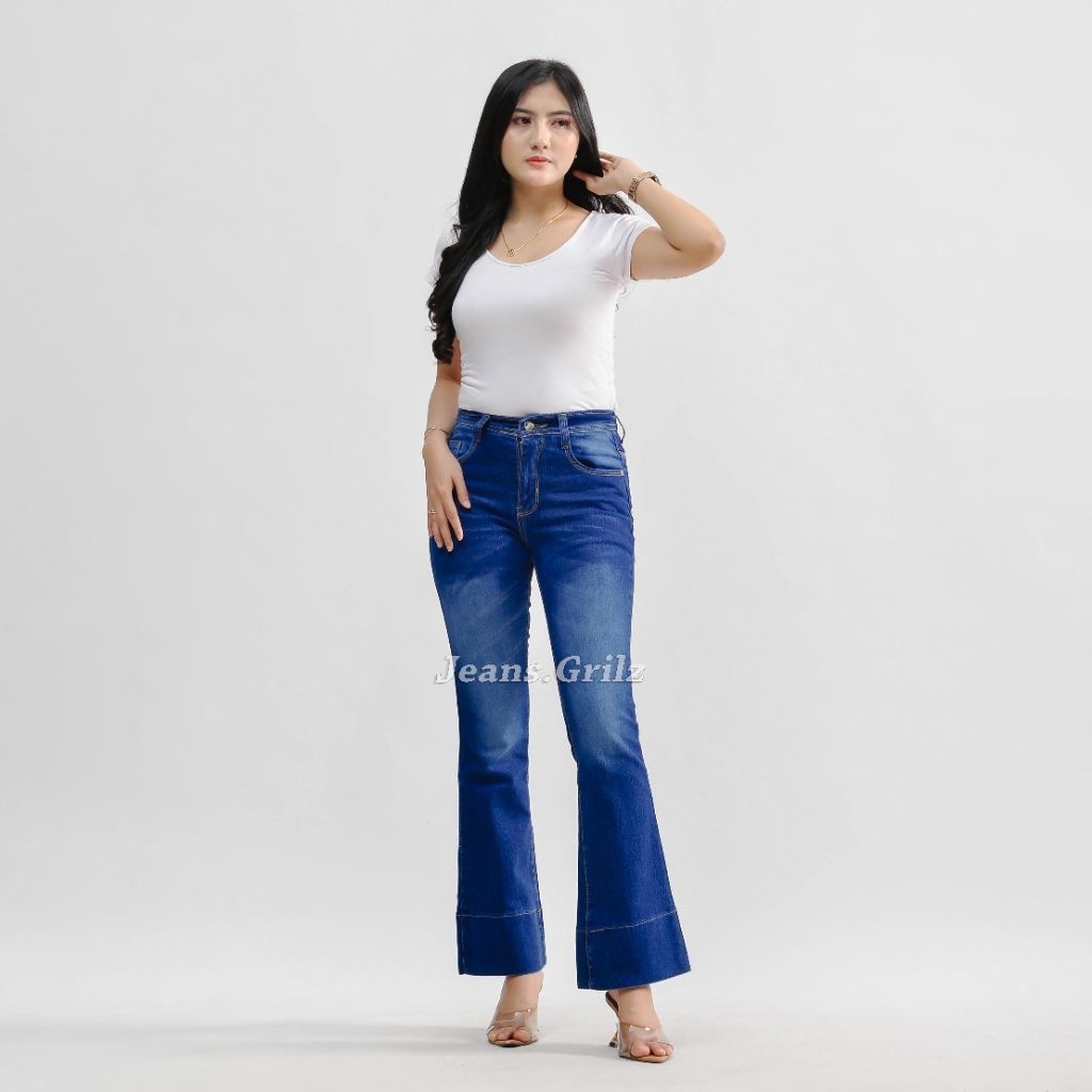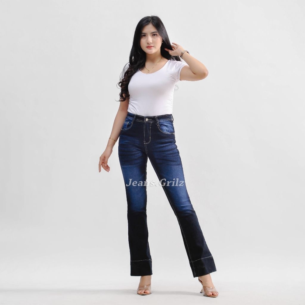 Jennie Cutbray Lipat-Celana Jeans Cutbray Flared Wanita HighWaist Bahan Tebal