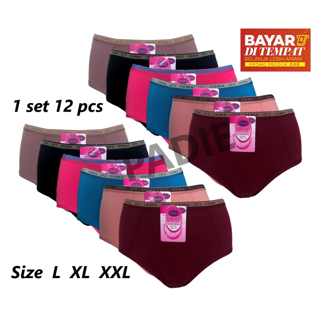 PADIe - 12 PCS Celana Dalam / CD Wanita FEMA 393 Size L, XL, XXL Multi Colour