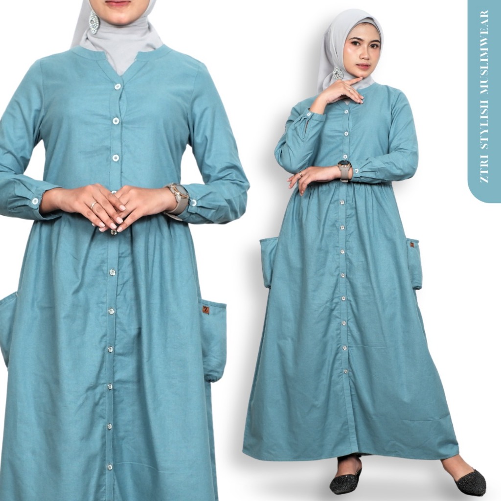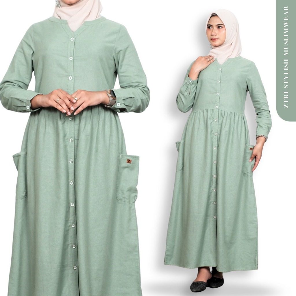 𝗭𝘁𝗿𝗶 - Long Dress Wanita Dewasa Motif Polos Outfit Muslim Kekinian Gamis wanita dewasa 2025