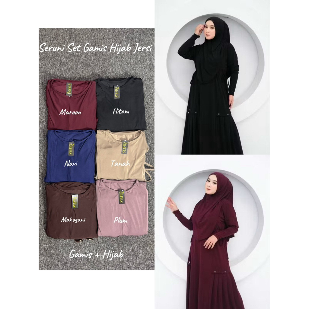 Seruni Set Hijab Muslim Jersi | Gamis hijab wanita