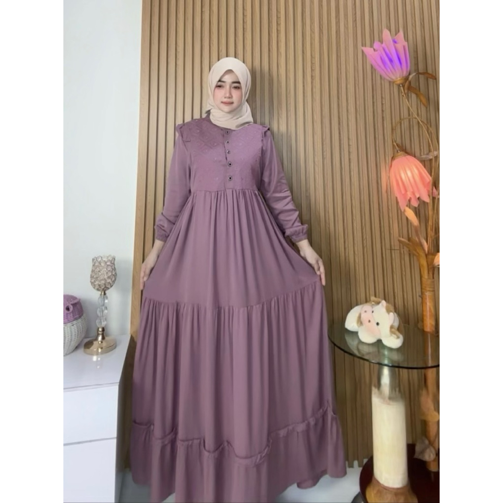 Gamis Sagita Bordir Busui Mayung Twill import Tebal nyaman kondangan lebaran terbaru