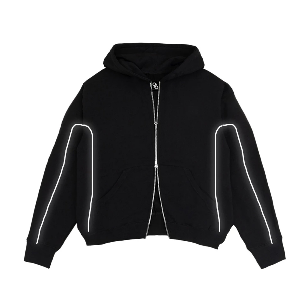 Gadabang Hoodie Boxy Double Zipper List Menyala Reflective Hitam