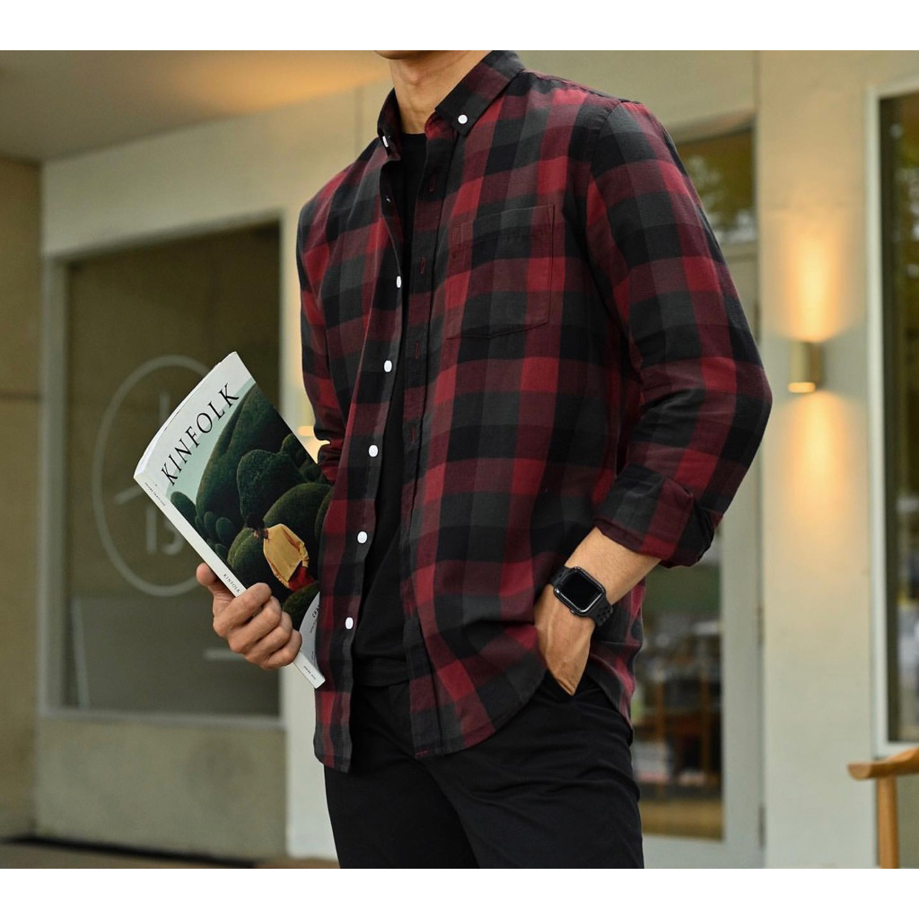 Heytuan Kemeja Flanel Pria Lengan Panjang Premium