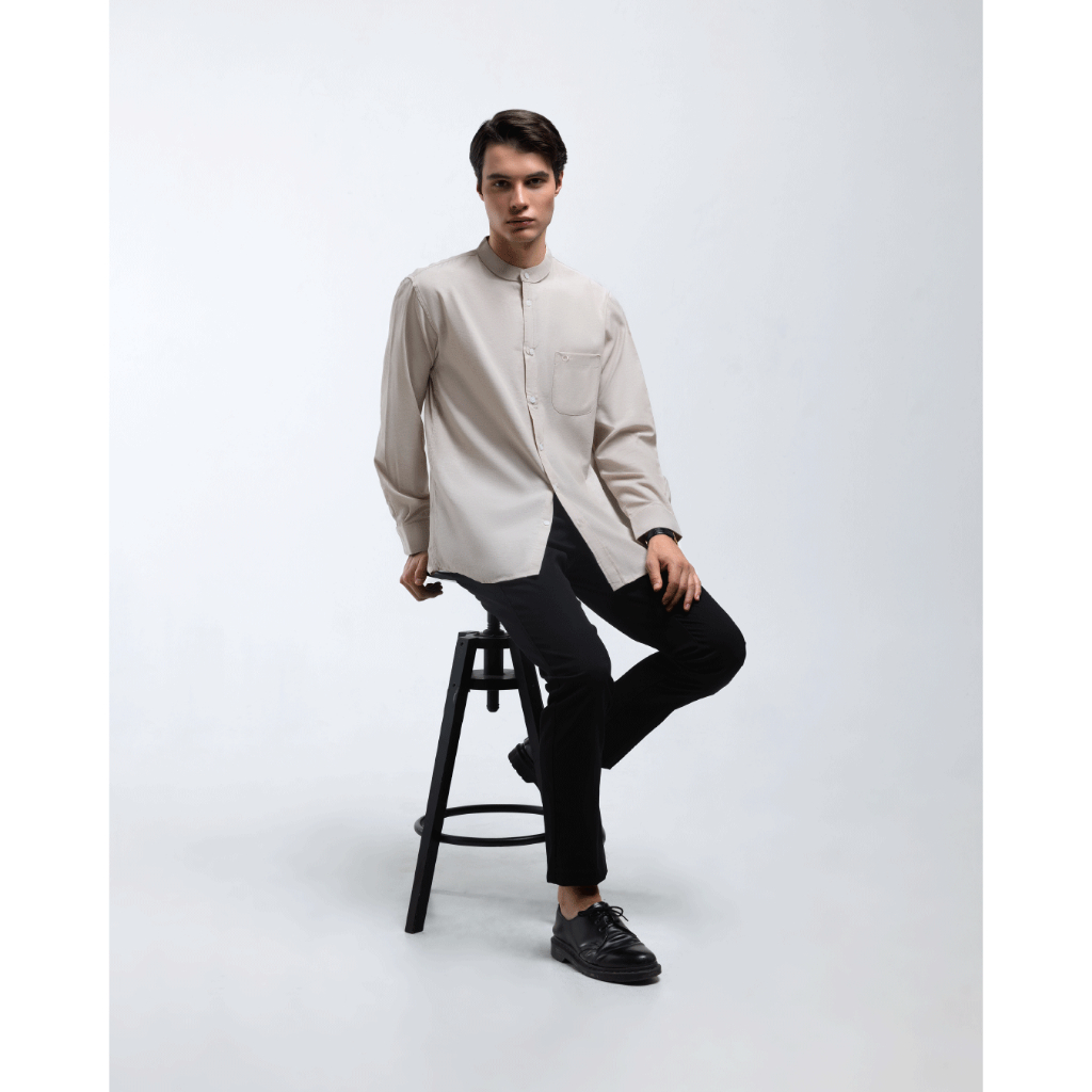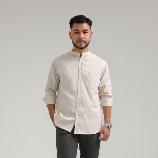 Broodis Kemeja Koko COZY Series Pria Cotton Oxford Beige Kerah Shanghai Lengan Panjang