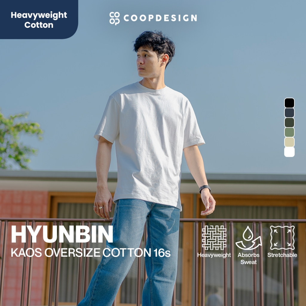 [Cotton 16s] Coop Design - Hyunbin Kaos Jumbo Polos Gelap Oversize Heavyweight Baju Unisex Wanita Pria T-Shirt Boxy Cut
