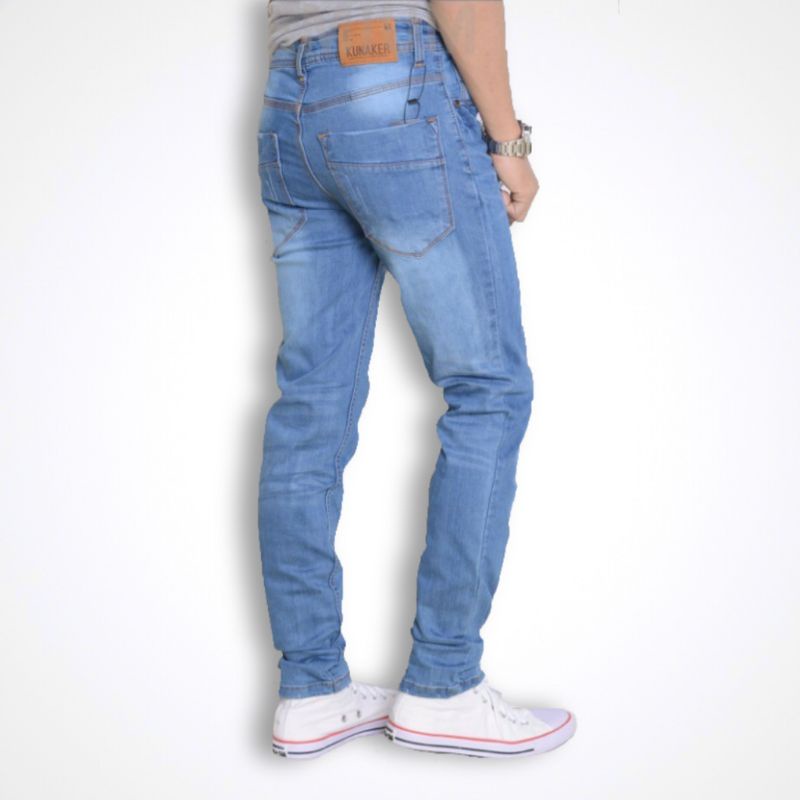 Celana Jeans pria Sobek lutut Ripped robek panjang distro bikers model ngaret pensil slimfit cowok skinny stretch denim import dewasa premium remaja standart
