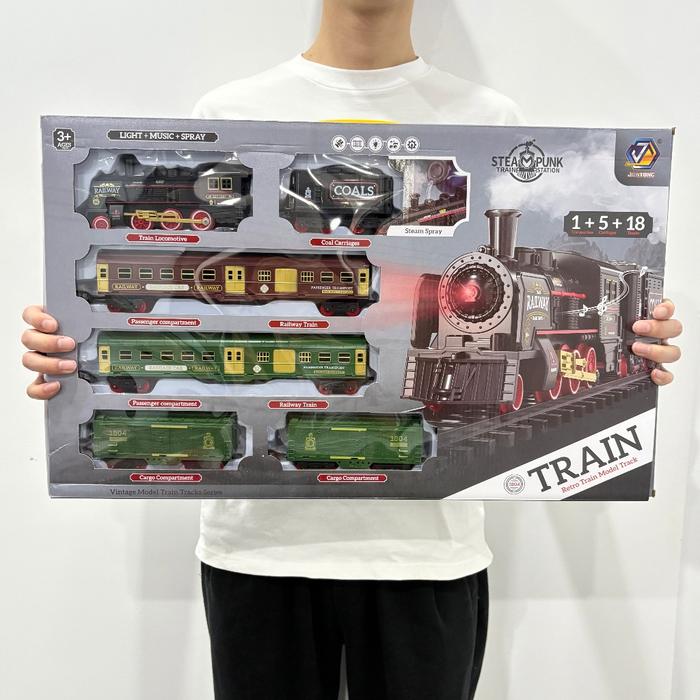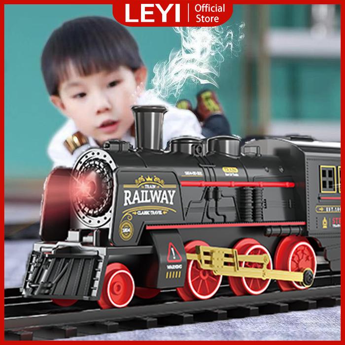 [Star] LEYI Kereta Mainan Rel Panjang Anak Train Set Laki Laki Kereta Elektrik Klasik Edukasi Rel - 1+5+16 Semprot