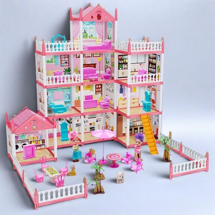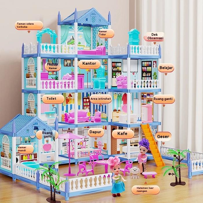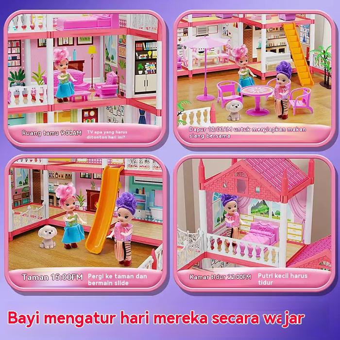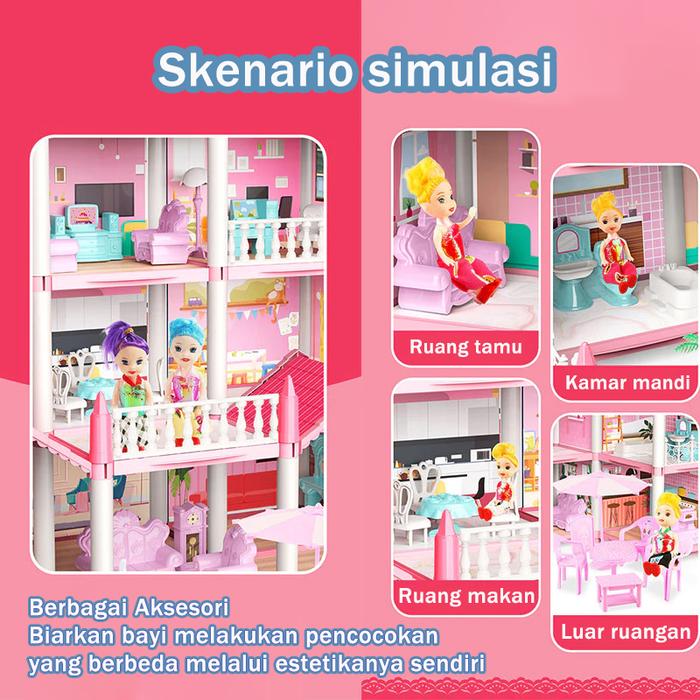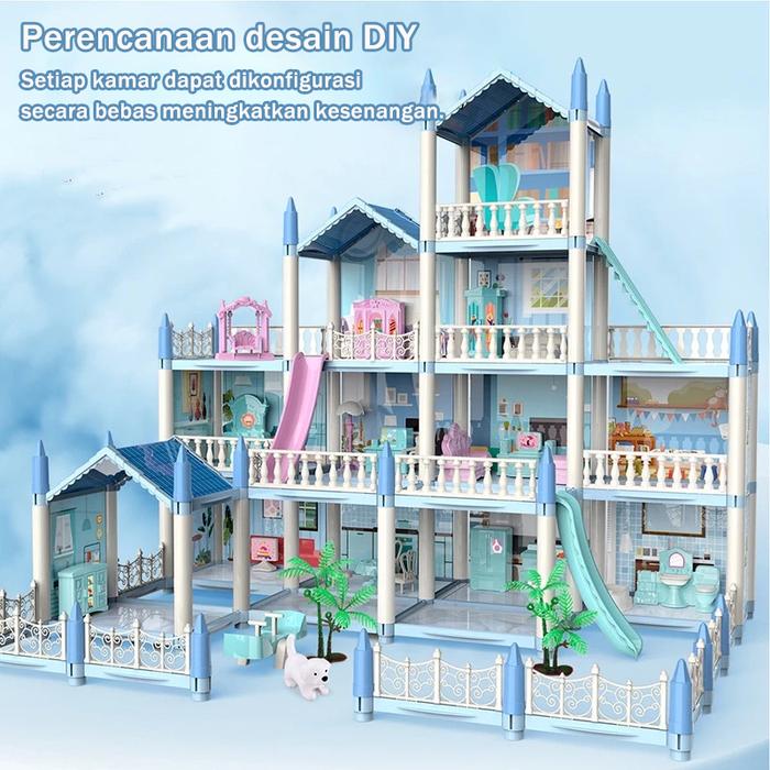 [Star] Mainan Rumah Rumahan Anak Perempuan 3D Princess Kastil Villa dengan Lampu dan Boneka Perakitan DIY Rumah Mainan T