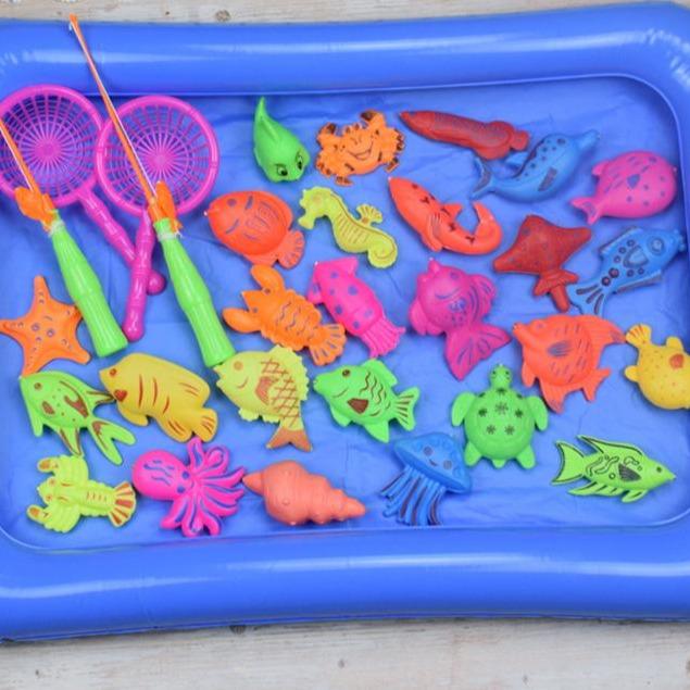 [Star] Mainan Pancing Ikan 32PCS + Kolam Pancingan Magnet Anak - PANCINGAN + KOLAM