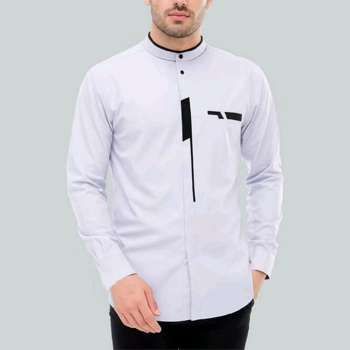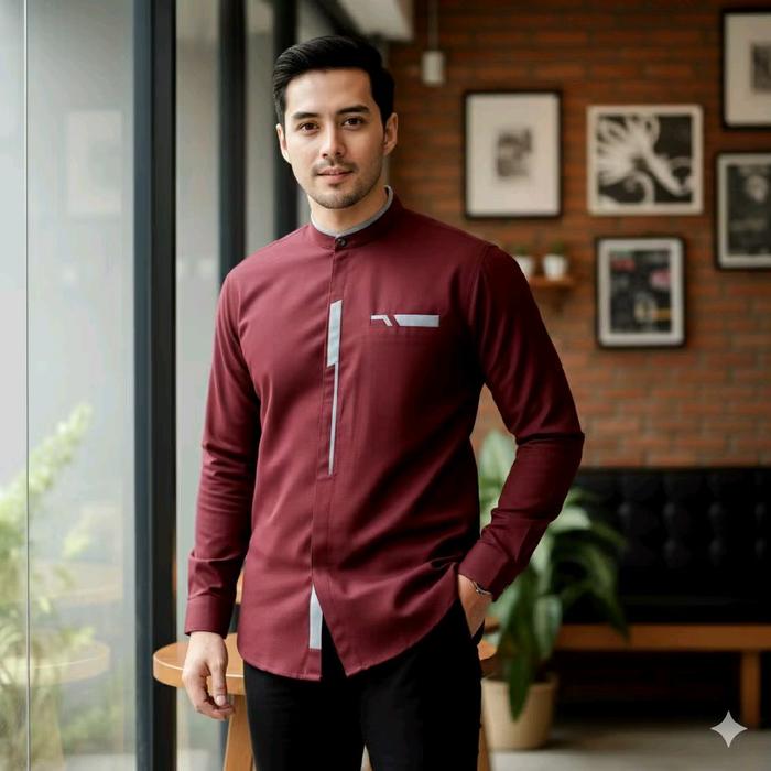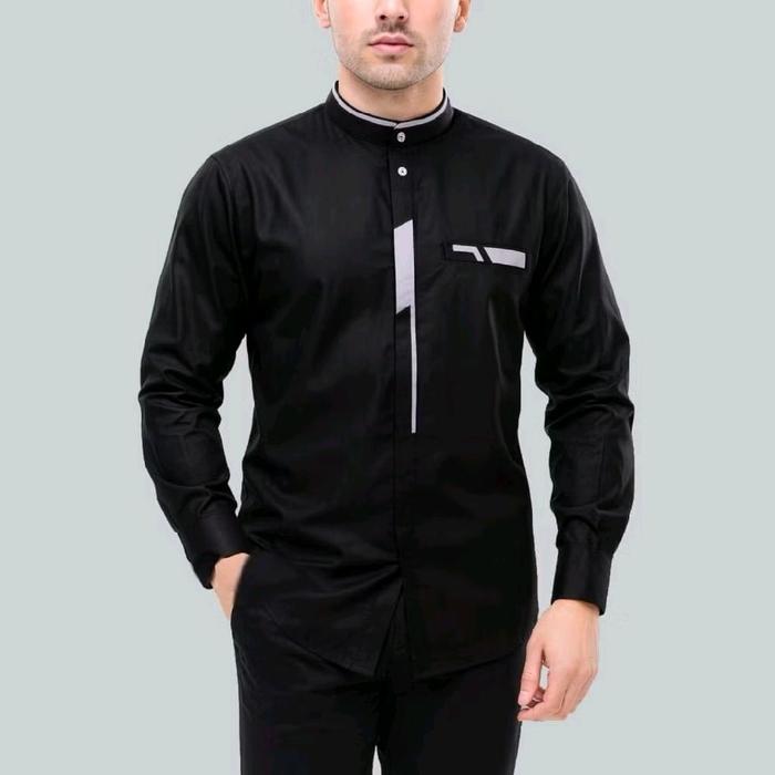 [Star] Baju Koko Pria Dewasa Lengan Panjang Atasan Muslim Model Terbaru Katun Nyaman M L XL XXL - Hitam, M