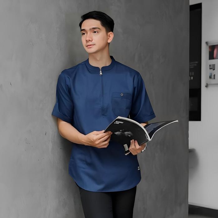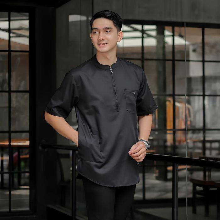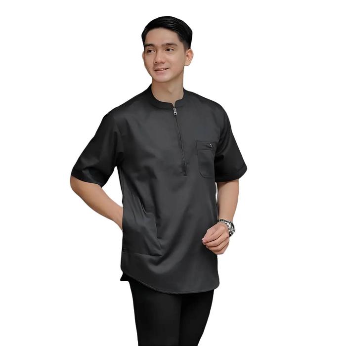 [Star] Baju Koko Kurta Resleting Pria Dewasa Lengan Pendek Casual Bahan Toyobo Import Premium Tebal Lembut Muslim Nyaman