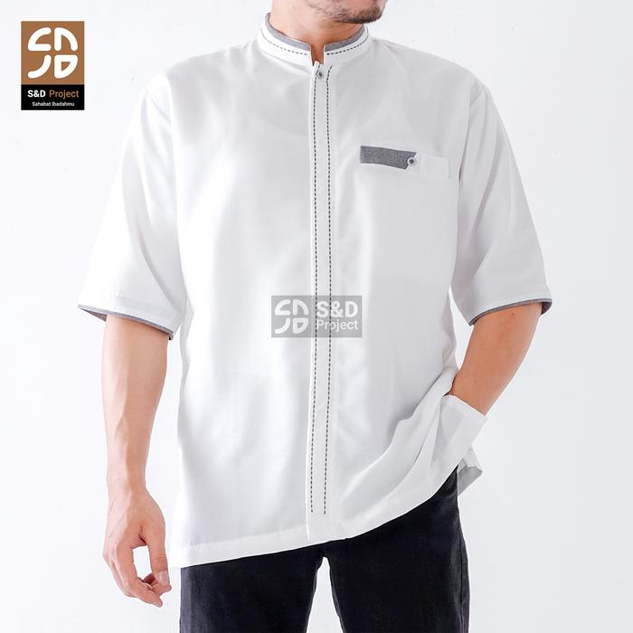 [Star] S&D PROJECT Baju Koko Muslim Seri 20 Bahan Polikatun Warna Putih Tulang Jumbo S-4XL Untuk Pria Dewasa Lengan Pend