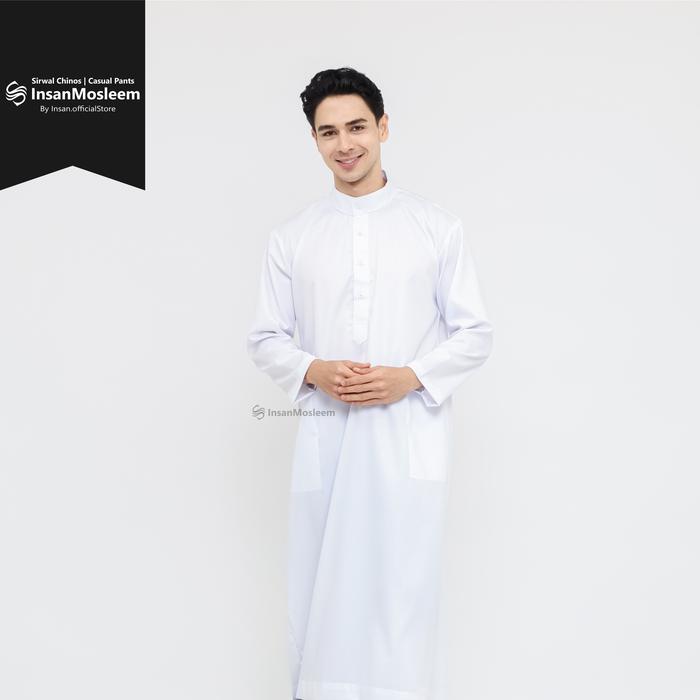 [Star] Jubah Gamis Pria Toyobo Lengan Panjang Polos InsanMosleem Muslim Dewasa - Putih, M