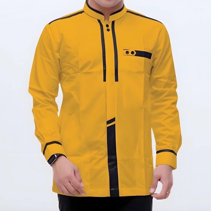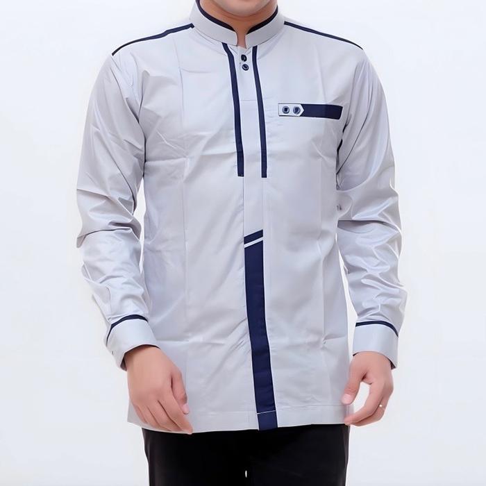 [Star] Baju Koko Pria Lengan Panjang Motif Katulistiwa Bahan Katun Toyyobo S M L XL XXL Muslim - Katulistiwa putih, M