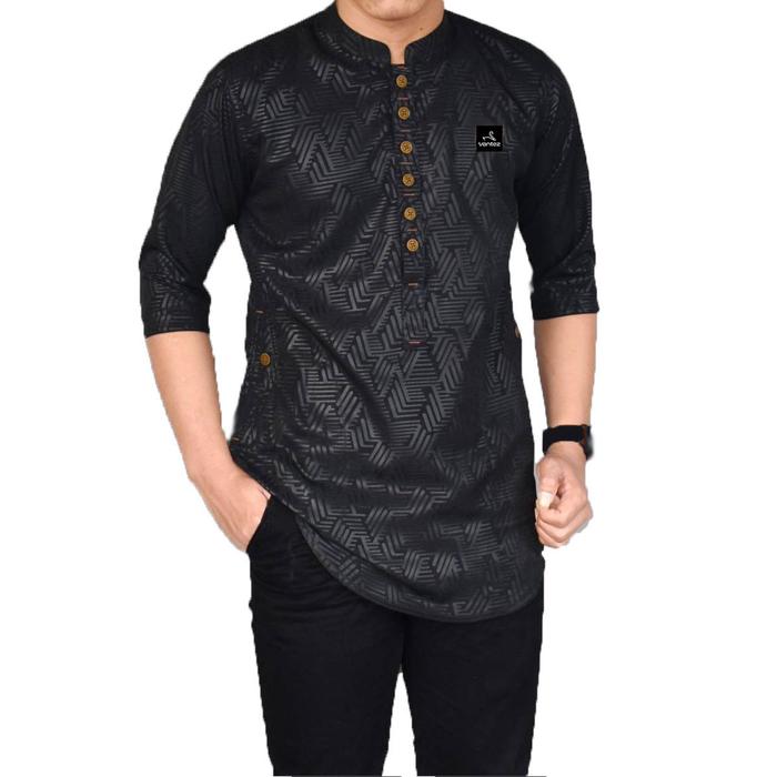 [Star] Baju Koko Embos Dewasa - Kurta - Baju Muslim Pria Katun - hitam, M