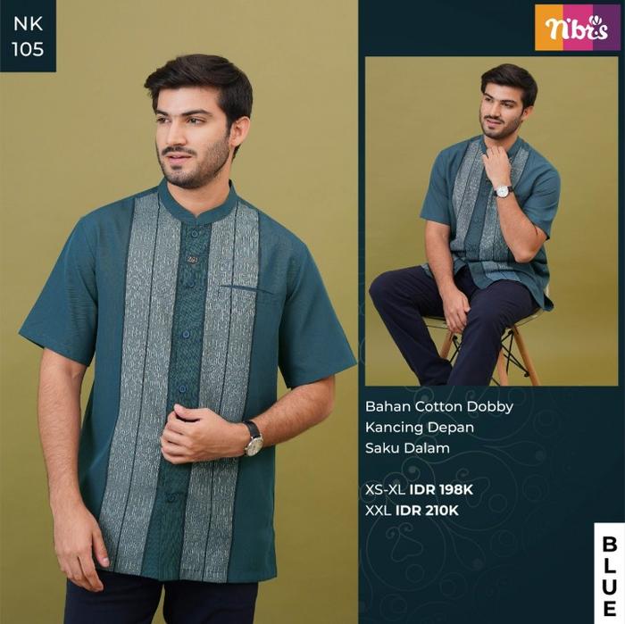 [Star] NIBRAS Koko NK 105 Pakaian Muslim Pria Koko Polos Atasan Pria Koko Lengan Pendek Baju Koko Dewasa - NK 105 BLUE,